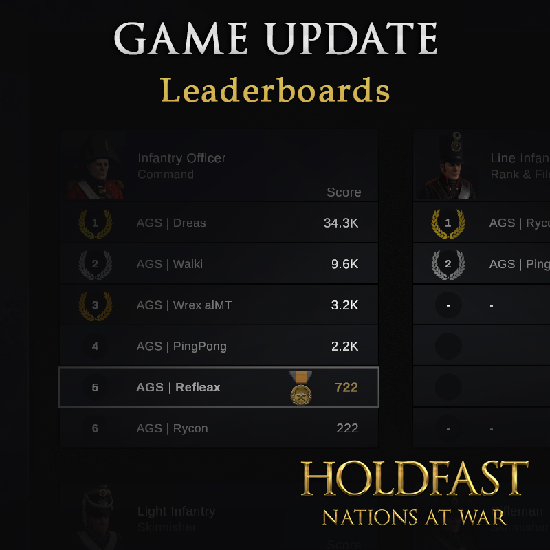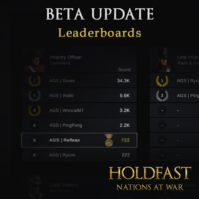 Excitement and revel as those good folks in the rank and file, artilleryman, skirmishers, crewman, those playing a support role as well as the ones in high-command strive to better their standing in the newly introduced class-based leaderboards.