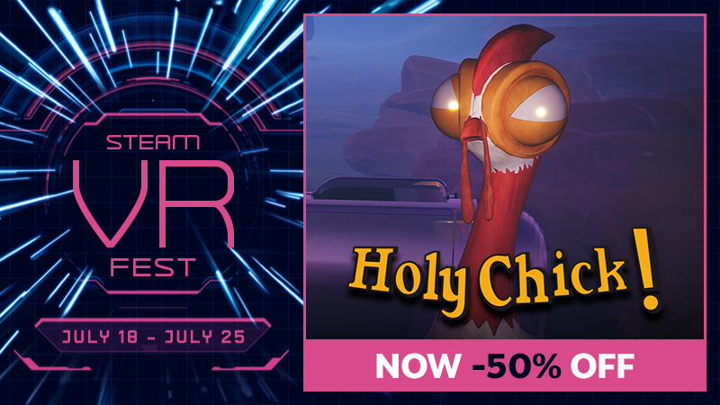 If you want to face the poultry madness, now is the time! Take advantage of -50% discount on the Holy Chick! game and celebrate the Steam VR Fest together with Iron VR! 🤓