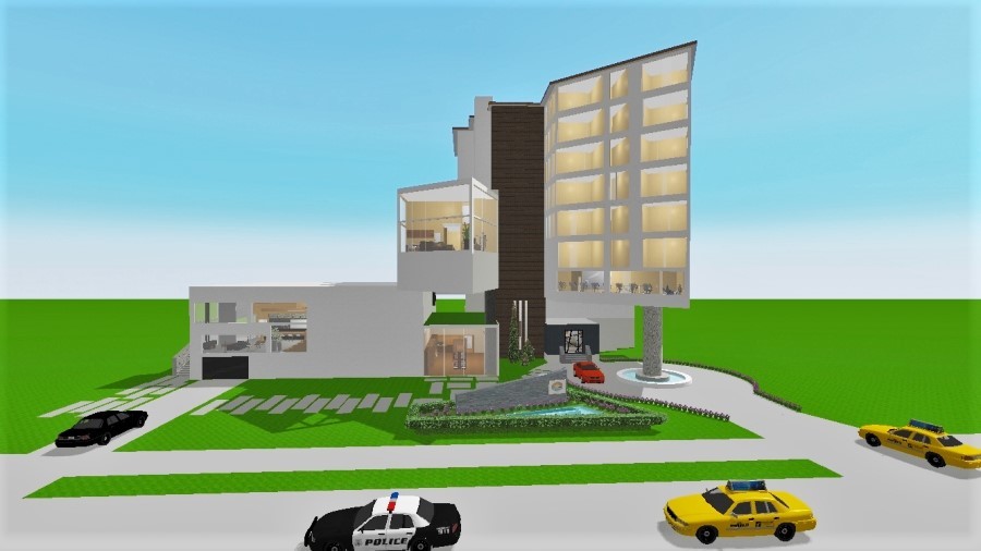 The Best Designer of the Week is HARMBRON1964 and his project named The Block! A luminous apartment block with openings and unusual architecture! With a statue, and a volleyball court!🏐