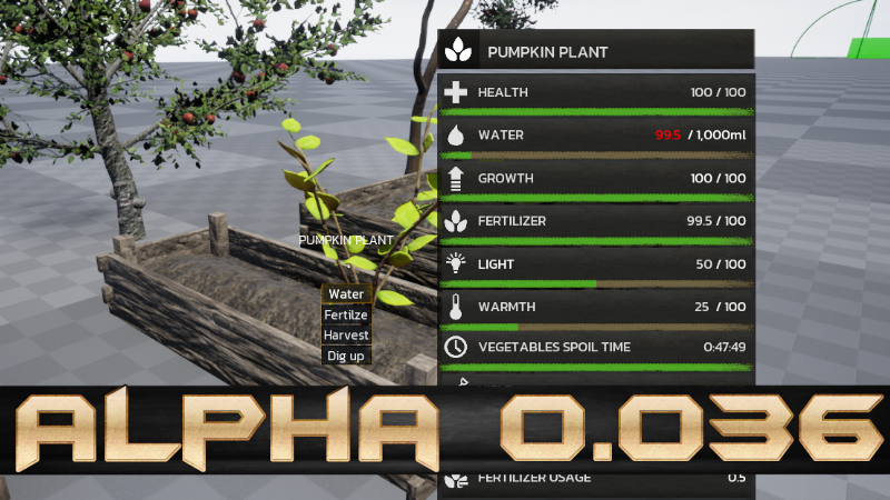 Logic of plants and their growth added. (Fertilizer, Light, Water and Warm Light)