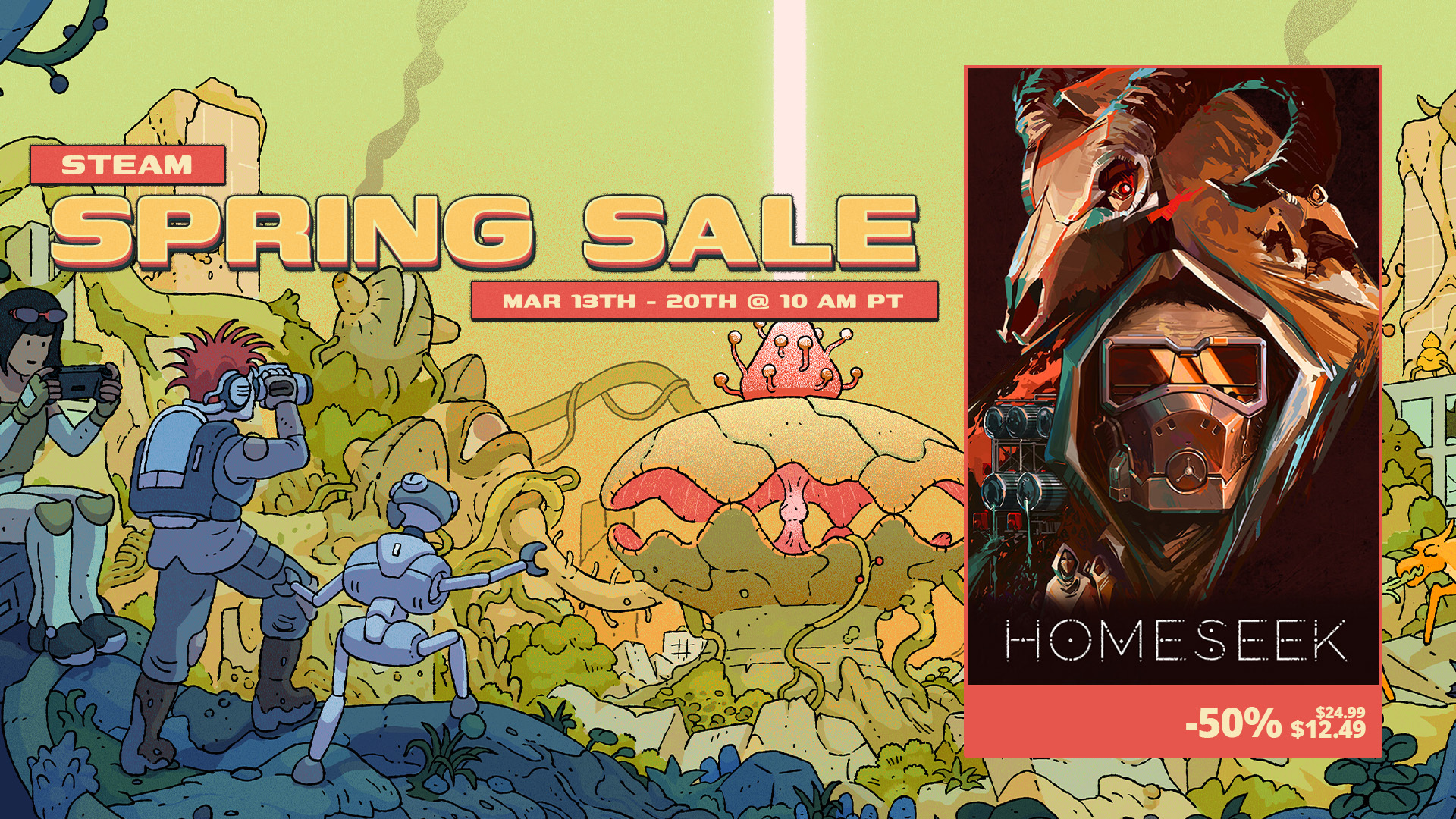 As the frost begins to thaw and nature stirs once more, a new season of survival begins in Homeseek. From now through March 20th at 10AM PT, embark on your post-apocalyptic journey at a refreshing 50% off during the Steam Spring Sale!