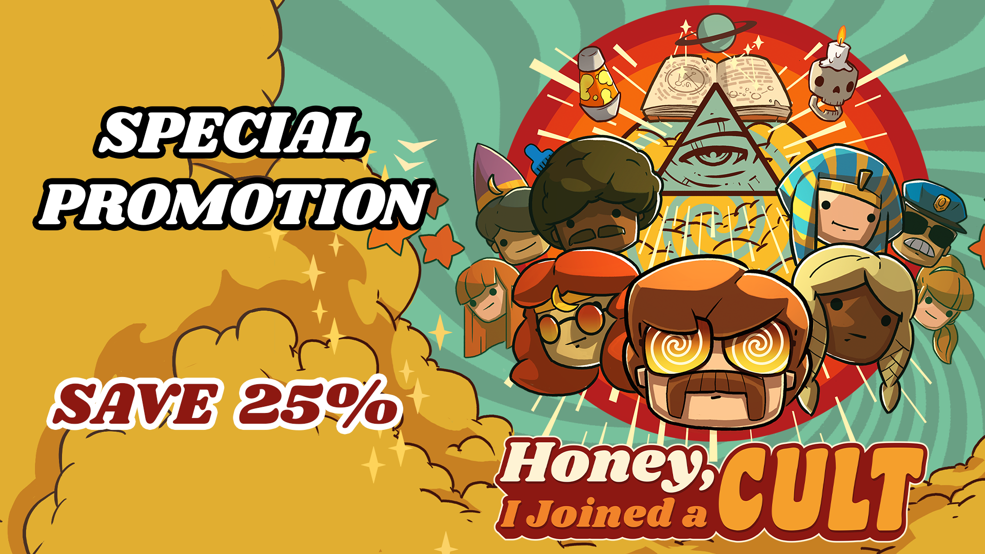 We come to you with great news! Honey, I Joined A Cult is currently 25% off during the Team17 Publisher Sale Event!