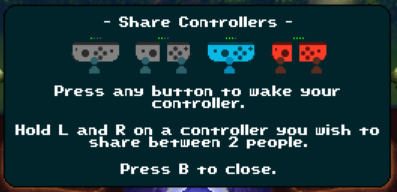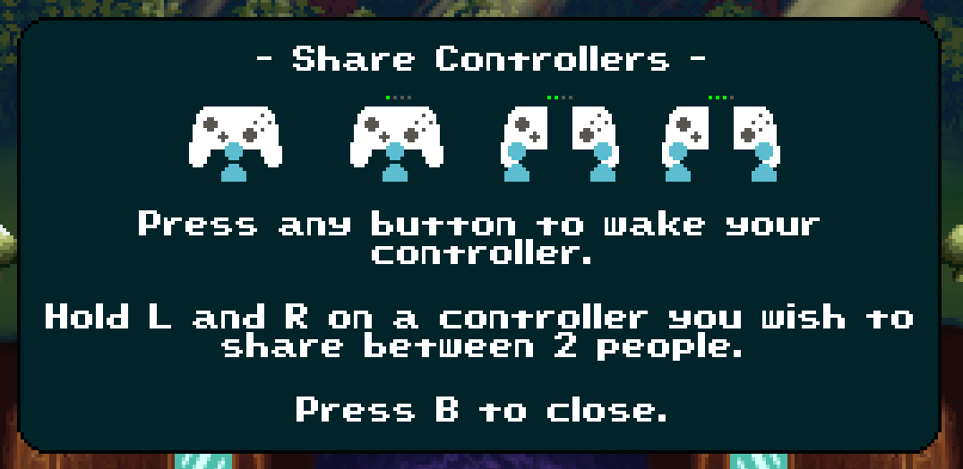 Split controller screen - here you can "split" controllers to share them with 2 players each, doubling the amount of possible players you can have!
