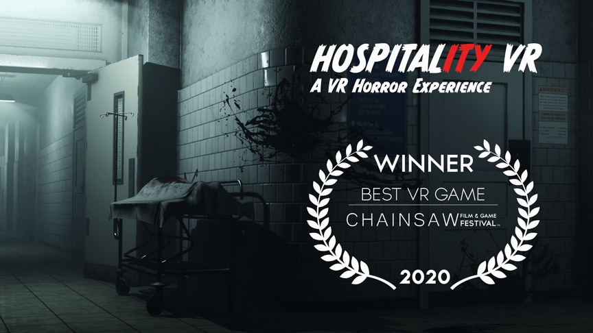 I am honoured and very happy to announce that “Hospitality VR” is now an award winning VR Experience. The award committee of Chainsaw Film and Game Festival has crowned my haunted hospital as winner of the category “Best VR Game”.