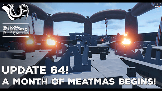 Another Meatmas week, another Meatmas GAME MODE! This week's is called KING OF THE GRILL, and it's the most intense one yet. Do you have what it takes to survive 15 waves of Sosig Assault, all while juggling random equipment and power-up grilling? There are three versions of the mode, Invasion, Rotten and Apocalypse, that change the sorts of enemies you'll be facing. For those of you looking for something higher energy with the Rotwieners, this mode is going to be great for you!