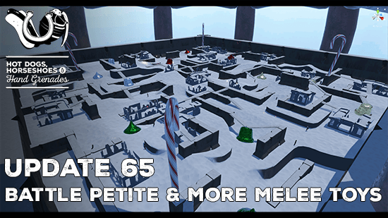 Hope your December is going well! Our month of Meatmas continues, and with it comes the first additional mode in the Cappocolosseum: Battle Petite. It’s a sort of mini-battle-royale that plays out in a new Arena Annex that’s been added. 26 Bots spawn along with the Player in random positions in a free for all battle with no-respawning and random equipment. Bots have been setup to fight their way to the center of the map, so a round is… not going to last very long :-)