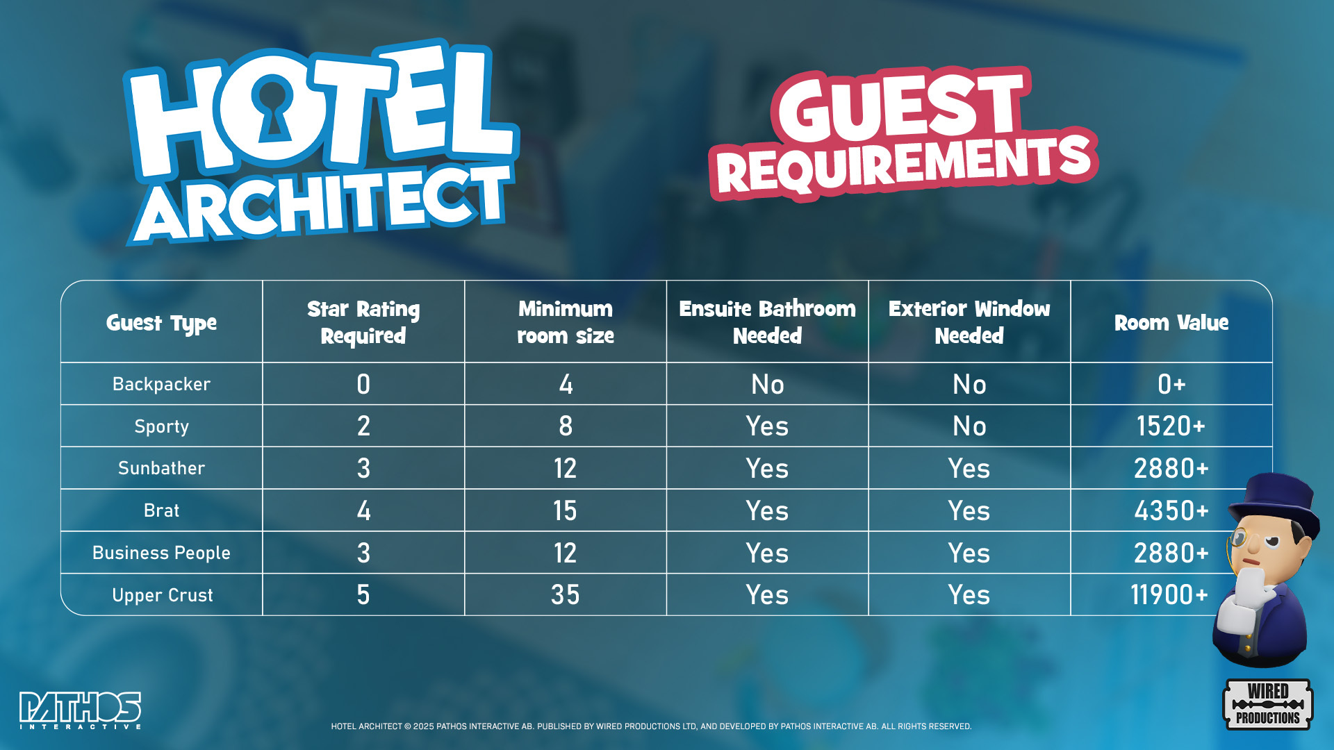 Hopefully that clears things up for you and will help you bring in all the guest types when creating your dream hotels!