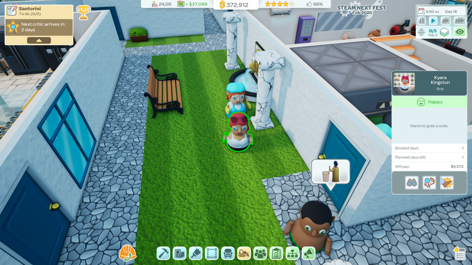 While Steam Next Fest ends this evening, the demo will remain available until Sunday, March 9th. That means a few more days to expand your dream hotels, fine-tune your layouts, and perfect those luxury details.