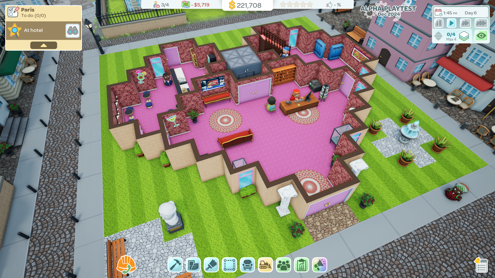 The wait is over! Our demo is now available as part of Steam Next Fest. This is your chance to step into the shoes of a hotelier and design the ultimate guest experience. Whether you've been eagerly following the game's development or are just discovering it, the demo offers a hands-on preview of what it takes to build, manage, and customize a world-class hotel.