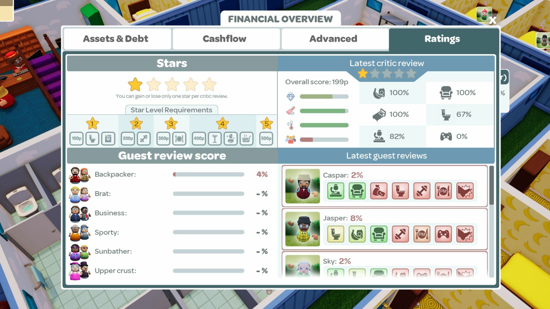 Critics will prioritize activities based on your current star level (e.g., they won’t look for a spa in a one-star hotel).