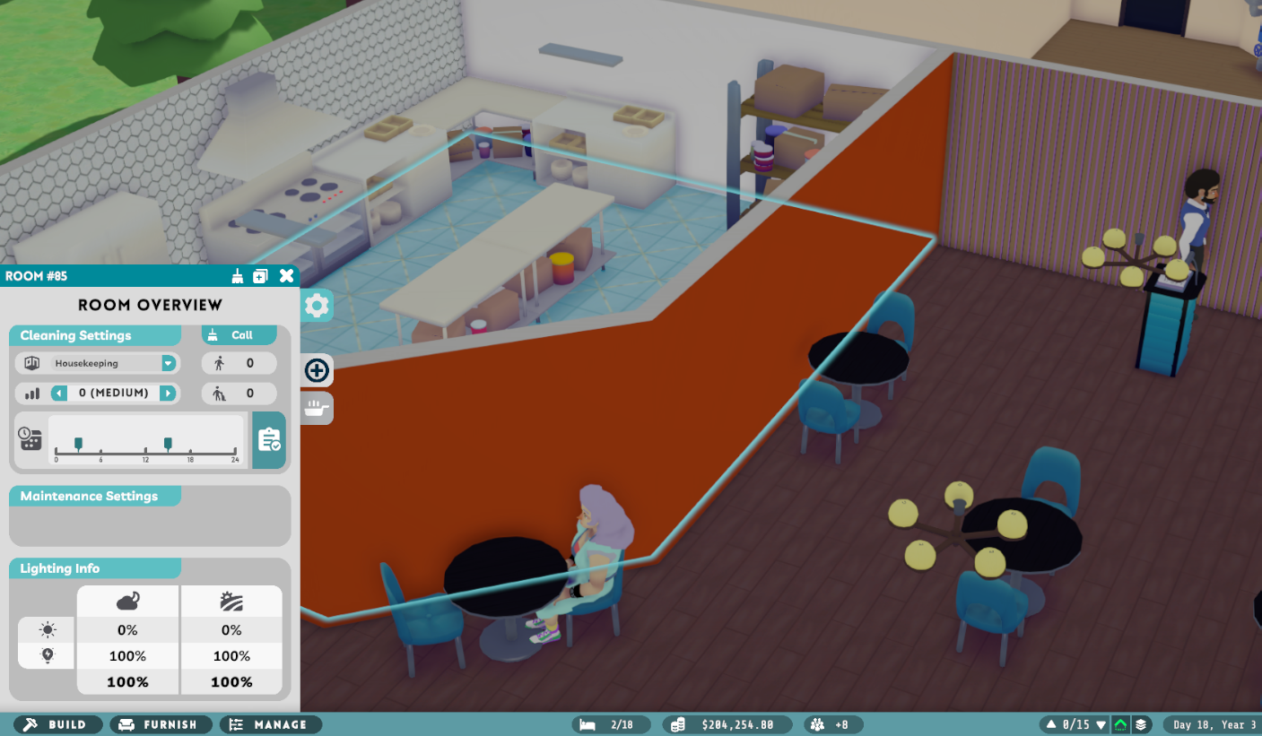 While we’re fine-tuning the cleaning system, we've also been working hard on refining maintenance operations. Say goodbye to the days of automatic maintenance issue reporting. From now on, maintenance problems must be noticed by staff in the affected area before they are reported. This change emphasizes the importance of regular staff patrols to catch issues early. Additionally, you’ll now have the power to manually report and prioritize maintenance tasks, adding another layer of strategy to your management toolkit. Just like the cleaning changes, these updates are crucial steps toward implementing more complex disaster and consequence systems in the future.
