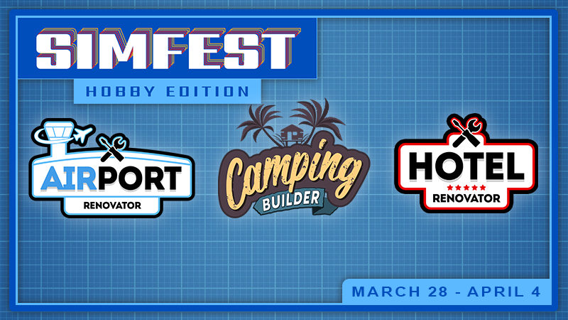Hello Renovators! We’re very pleased to announce that three of our games will be showcased during the upcoming Steam SimFest Hobby Edition. Starting on the 28th of March our team will once again deliver some fun content from Hotel Renovator, Airport Renovator and Camping Builder for you to enjoy – and yes, that means more streams from the Two Horizons crew are coming your way!