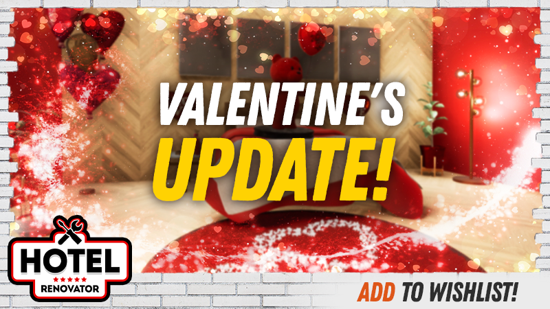 It’s Valentine’s Day, and we are super-happy to give you a new Hotel Renovator demo update! Grab your cute decorations and put your heart into designing the perfect romantic room.