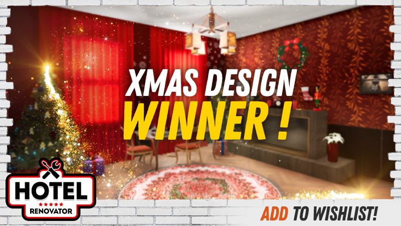 Nema Lass - one of our active Discord community members is the clear winner of our Xmas competition! She posted a lovely festive design, using many of the accessories we’ve given out as a part of the Hotel Renovator Advent Calendar. Nema Lass will be memorized in the game demo, by having her own special wall sticker, that everyone will be able to use! Congratulations.