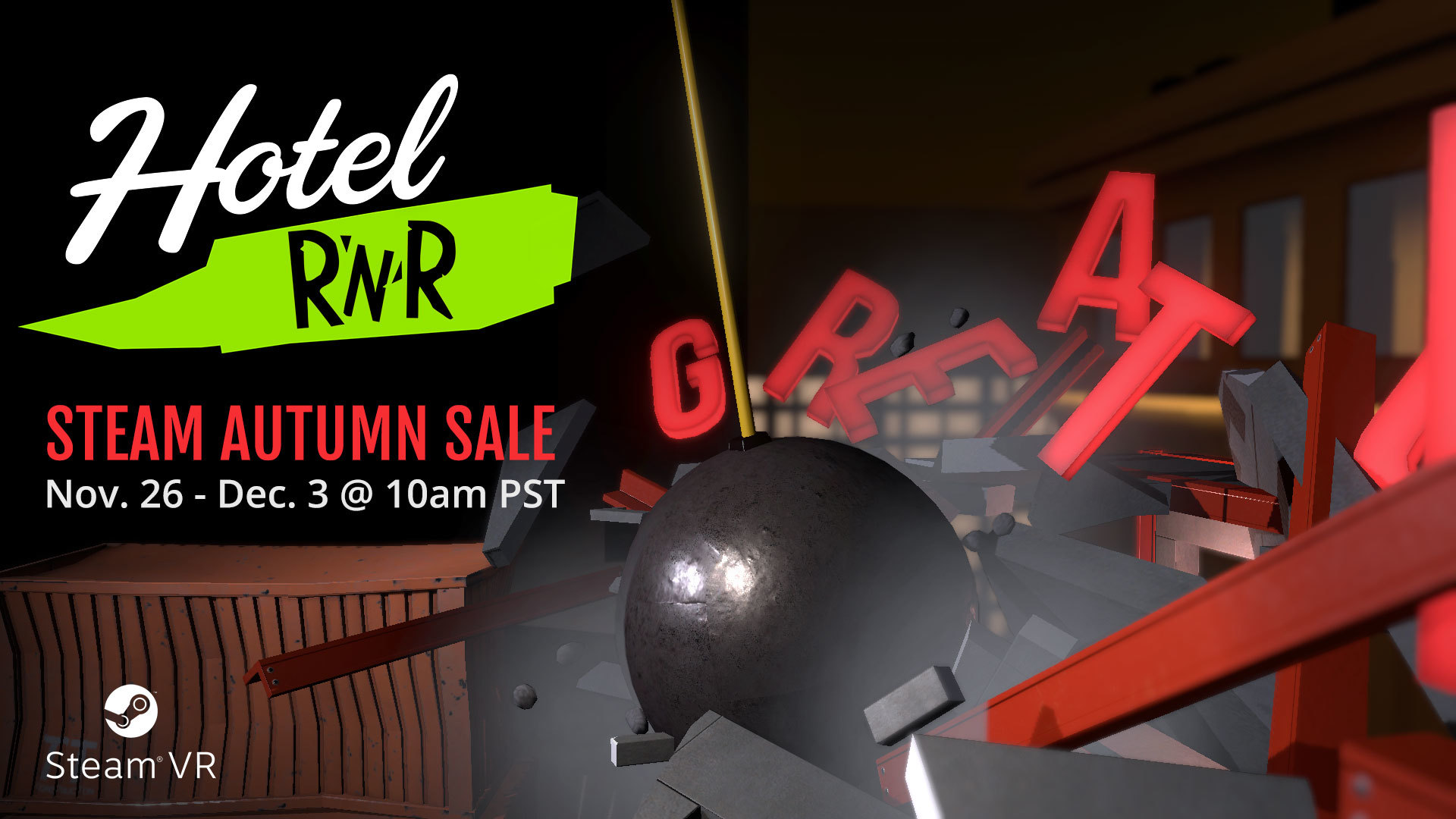 Everyone’s favourite narrative’smash’em’up VR game is on sale. Tell your friends, family and complete strangers by about it NOW!