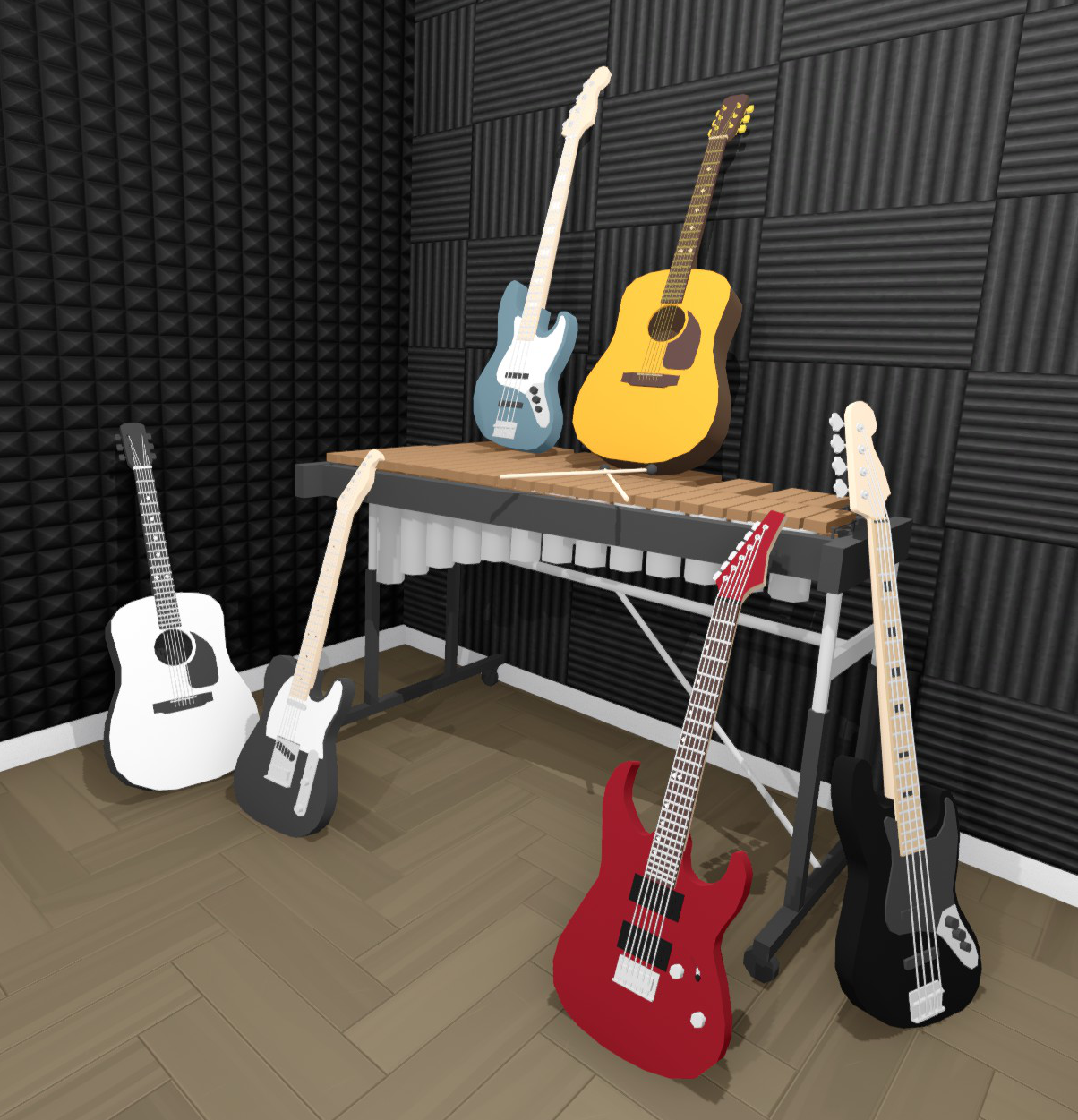 This time, we’ve focused on musical items, like guitars, but also a fully interactable drum kit, and a xylophone too!