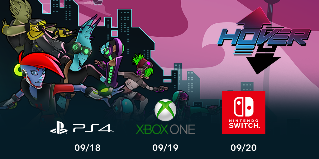 Along with our publisher Playdius, we just announced that Hover will finally make its debut on consoles starting on Sept. 18, 2018. Precisely, Hover will be available on PlayStation®4 on Sept. 18, on Xbox One on Sept. 19 and on Nintendo Switch™ on Sept. 20.