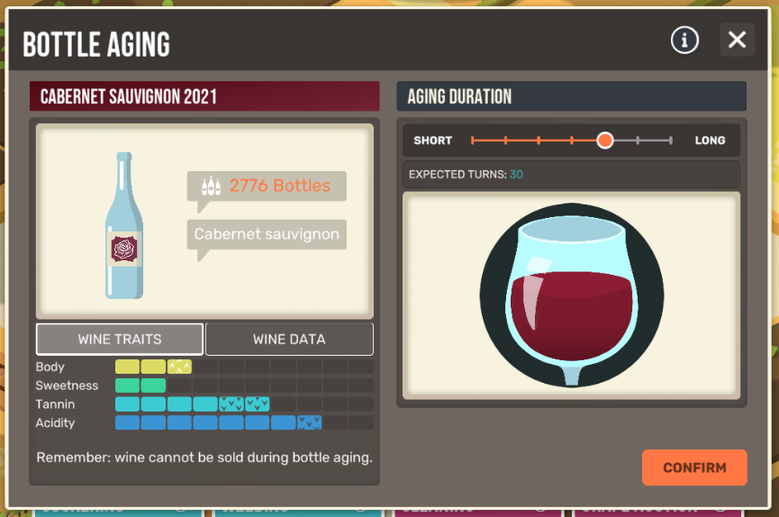 New unlockable technology, like grape harvester, grape auction and bottle aging