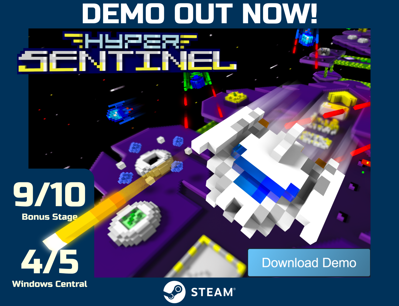 We are delighted to announce that a FREE demo version of Hyper Sentinel is now available to download from the Steam store page!