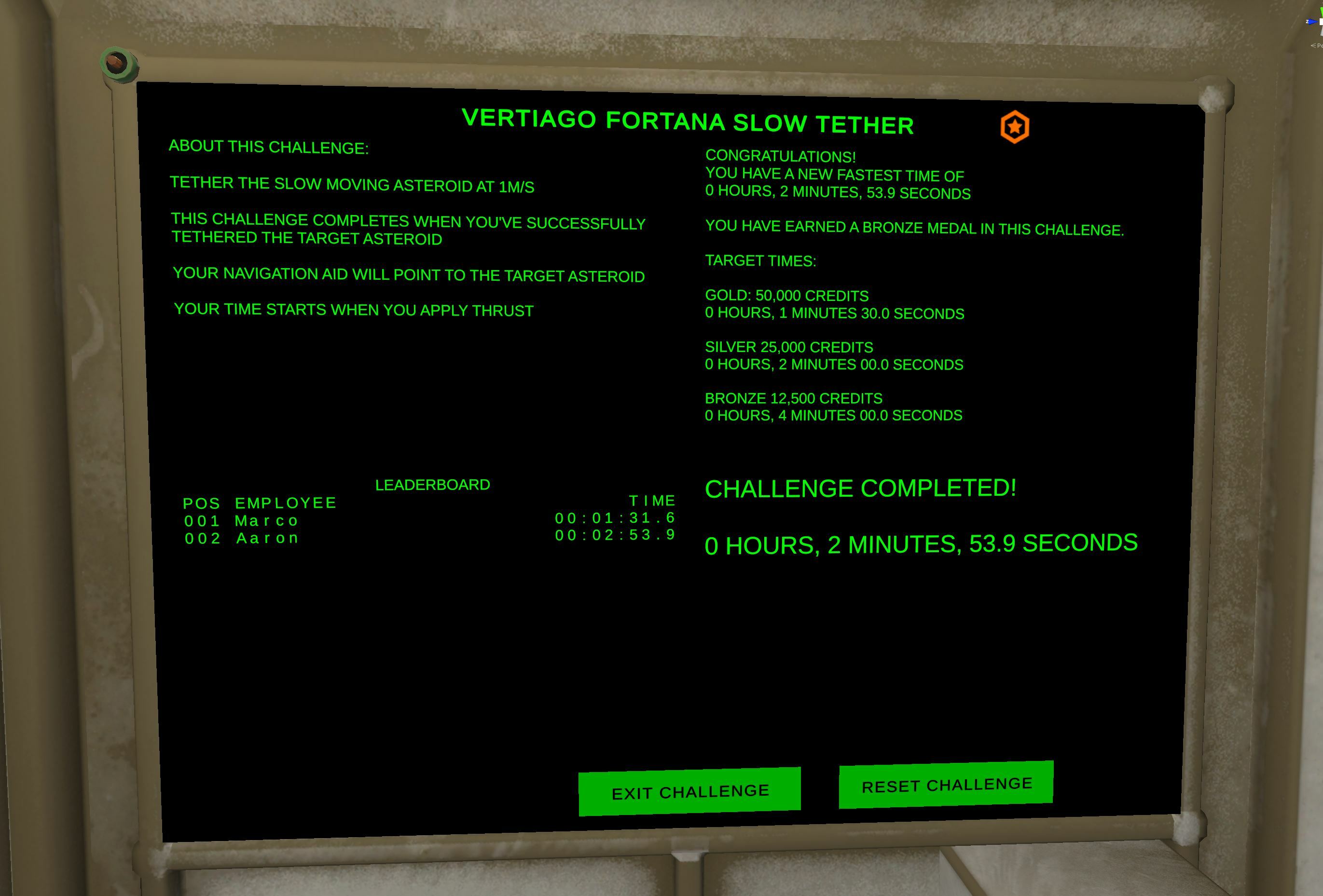 In this update are two time trial courses and two asteroid tether challenges, more challenge types are coming in future updates but for now let’s tick that roadmap item!