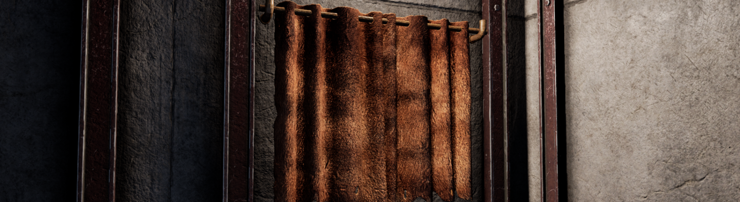 Made a new version of the materials and textures for the fur window and door curtains with better resolution fur and less gore on the back of the curtain. Updated meshs and BP with new materials
