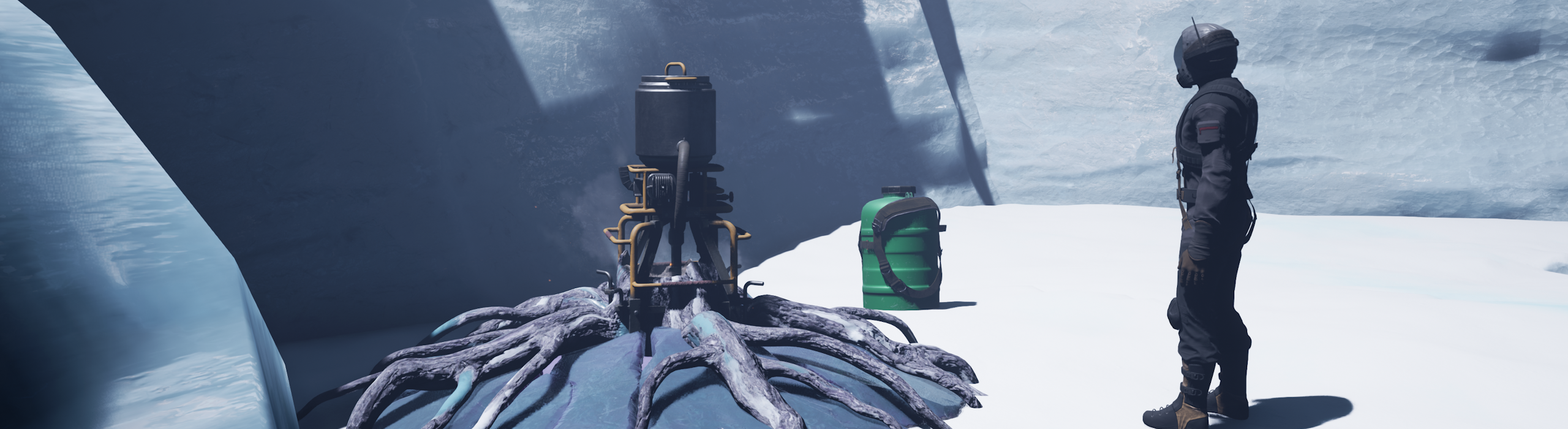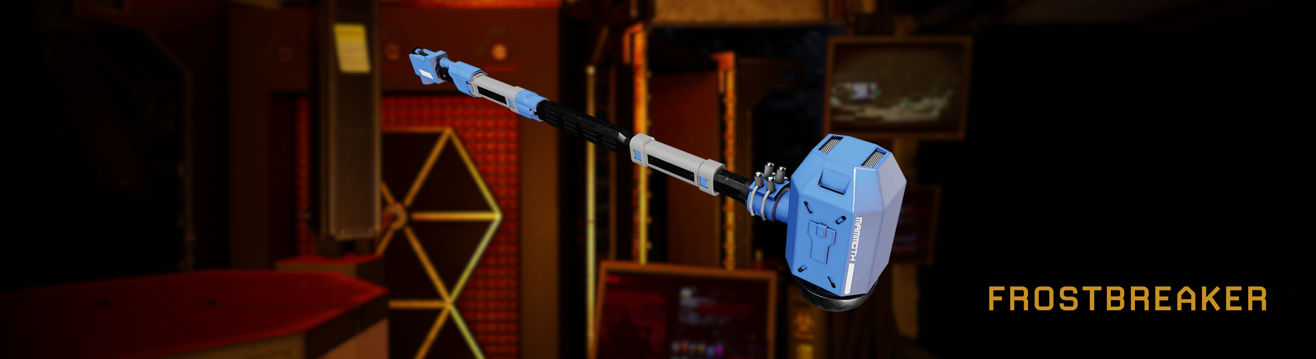 The Frostbreaker is a prototype Sledgehammer crafted from the Biomass of the legendary ‘Rimetusk’ Ice Mammoth. It is both a lethal weapon and a utility tool with repair and mining capabilities, with attachments such as ‘Fracturing Skull’, allowing you to smash and mine large chunks of ore or ‘Chilling Femur’ which gives you the chance to spawn Ice Spires on impact, just like Rimetusk does to you.