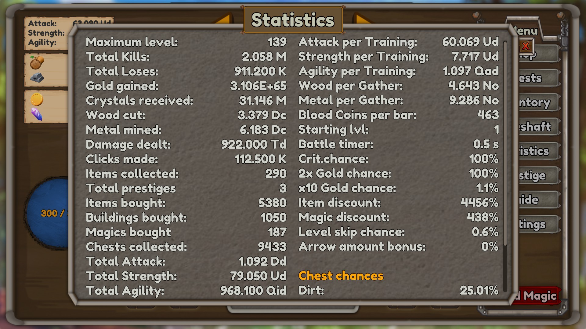 <*> Removed limits from some bonuses at Chests. "Starting level" bonus max level depends now on your max level reached divided by 2