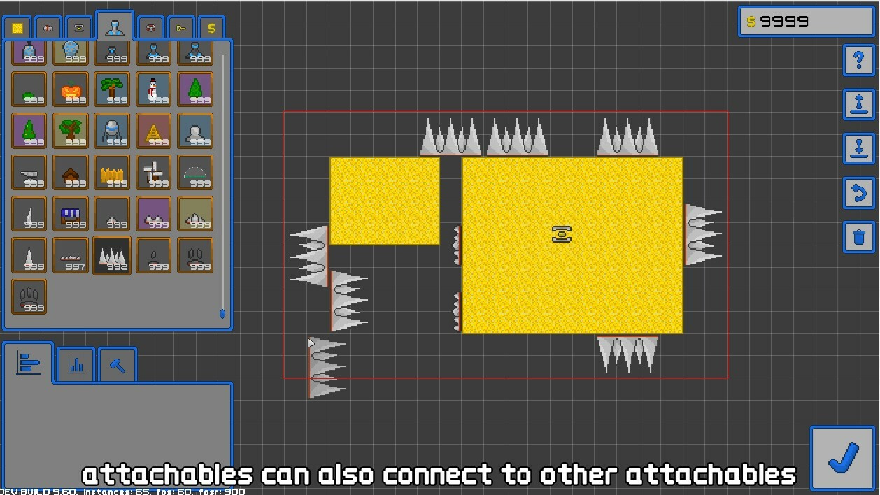 Loads of new items that have explosions, slight gravity, cluster bombs, laser rays, flamethrowers, and more! Hold down right click when making a new game to launch yourself into sandbox mode and gain access to all the items!