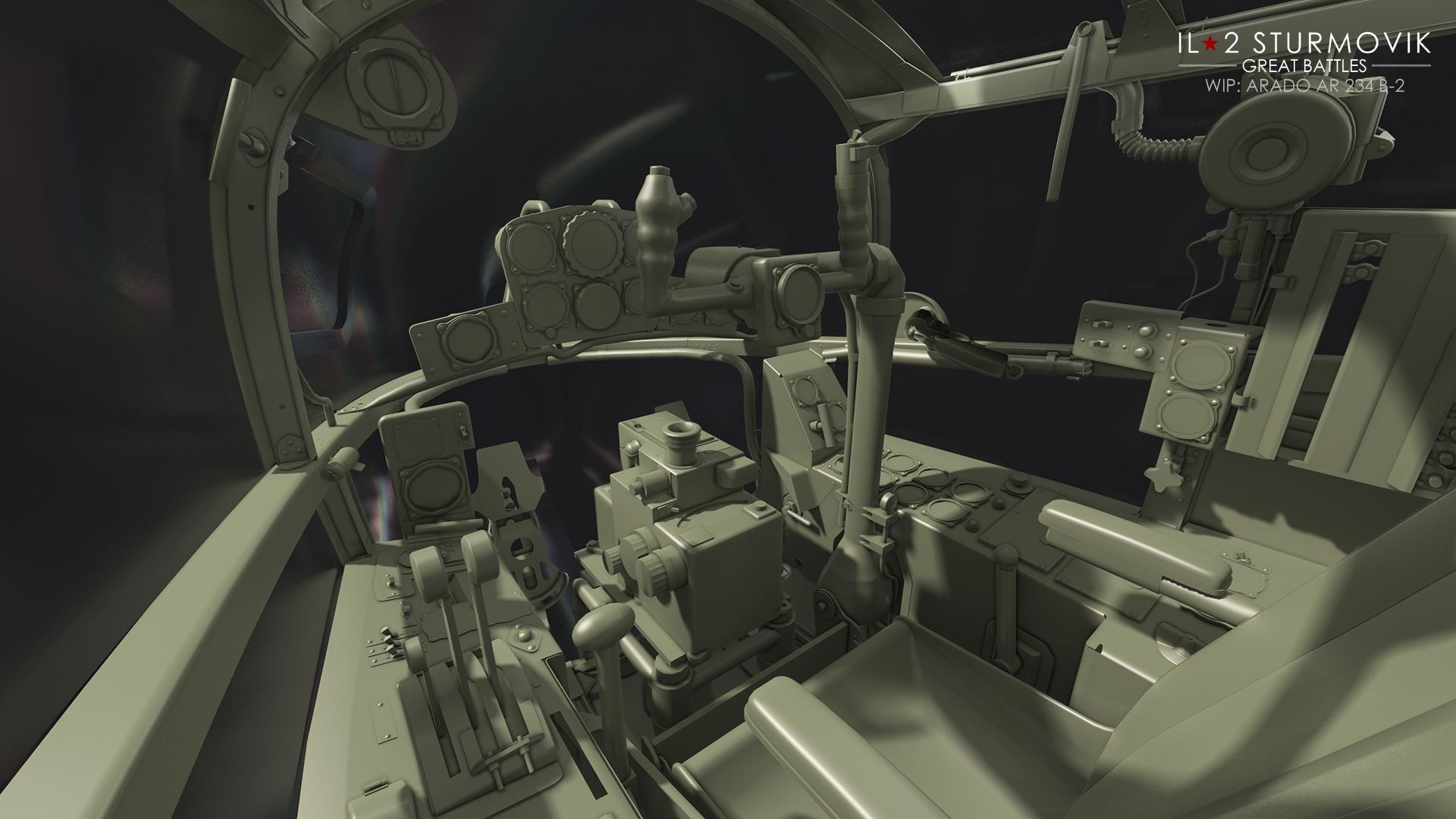 The team is on a well-deserved extended weekend and Jason is lost in the middle of America on a research mission, so today’s DD is very straightforward. Behold the jet powered Arado AR 234 B-2 bomber! What sleek lines she has! As you saw last week, the Arado’s unique cockpit is also in development. We are working as hard as we can to make her operational as fast as we can.