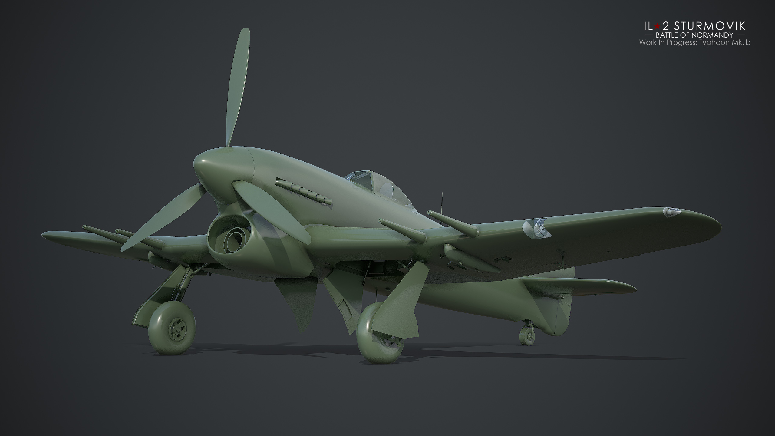 The first thing we can show you today is a 3D render of the Hawker Typhoon Mk.Ib, the legendary fighter-bomber of the RAF, which is very much anticipated by many in our simming community. In Battle of Normandy, this aircraft will, as it should be, presented with its late version with a drop-shaped cockpit canopy, a modified stabilizer of the type used on Tempest aircraft, and with two versions of the propeller (three- and four-bladed). It will be armed with four 20 mm Hispano cannons and also rockets and bombs. Despite the fact that the aircraft belongs to the class of fighter-bombers, due to the mighty 2200-horsepower Napier Saber IIa engine (and when using the 11-pound boost and up to 2400hp), it possessed strong flight performance. All in all, it will be an extremely interesting Allied aircraft that will help its virtual pilot achieve success in battle against both the ground and air enemy forces.