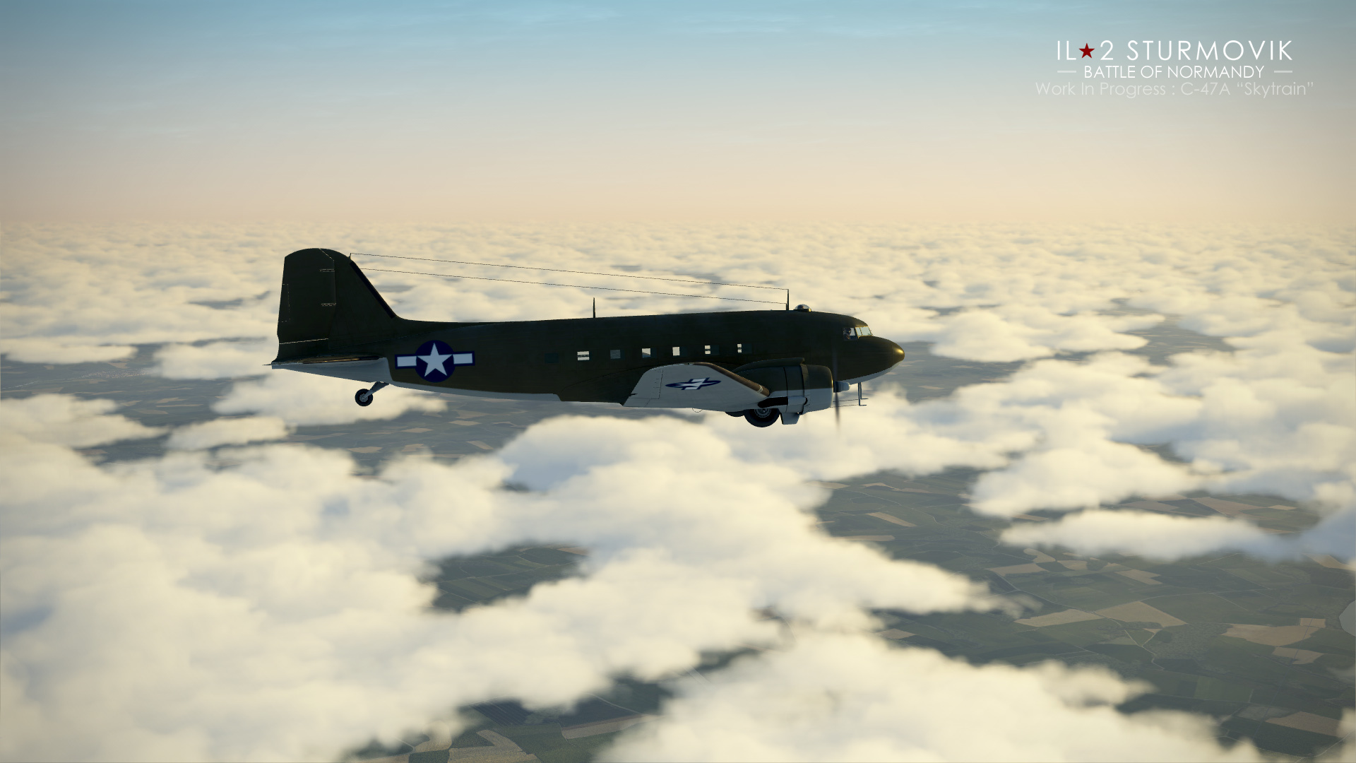 Our engineering department is fully engaged in the development of flight models of three aircraft - the C-47, Bf-109G-6 Late and the Spitfire Mk.XIV, while at the same time work on deepening the model of aircraft fuel systems is in the research and prototyping stage. Creating the technical specifications for all aircraft and other objects of for Battle of Normandy is coming to and end which is was a huge and complex research task. Completion of this allows Viks to now focus some attention to the Career mode. At the moment, 3D models of several aircraft are at various stages of development - the Hurricane, P-51B, Spitfire Mk.XIV, Bf 109 G-6 Late, Mosquito, Typhoon and C-47. It is the last aircraft from this list, the twin-engine C-47 military transport, that today we are ready to show you in the game world: