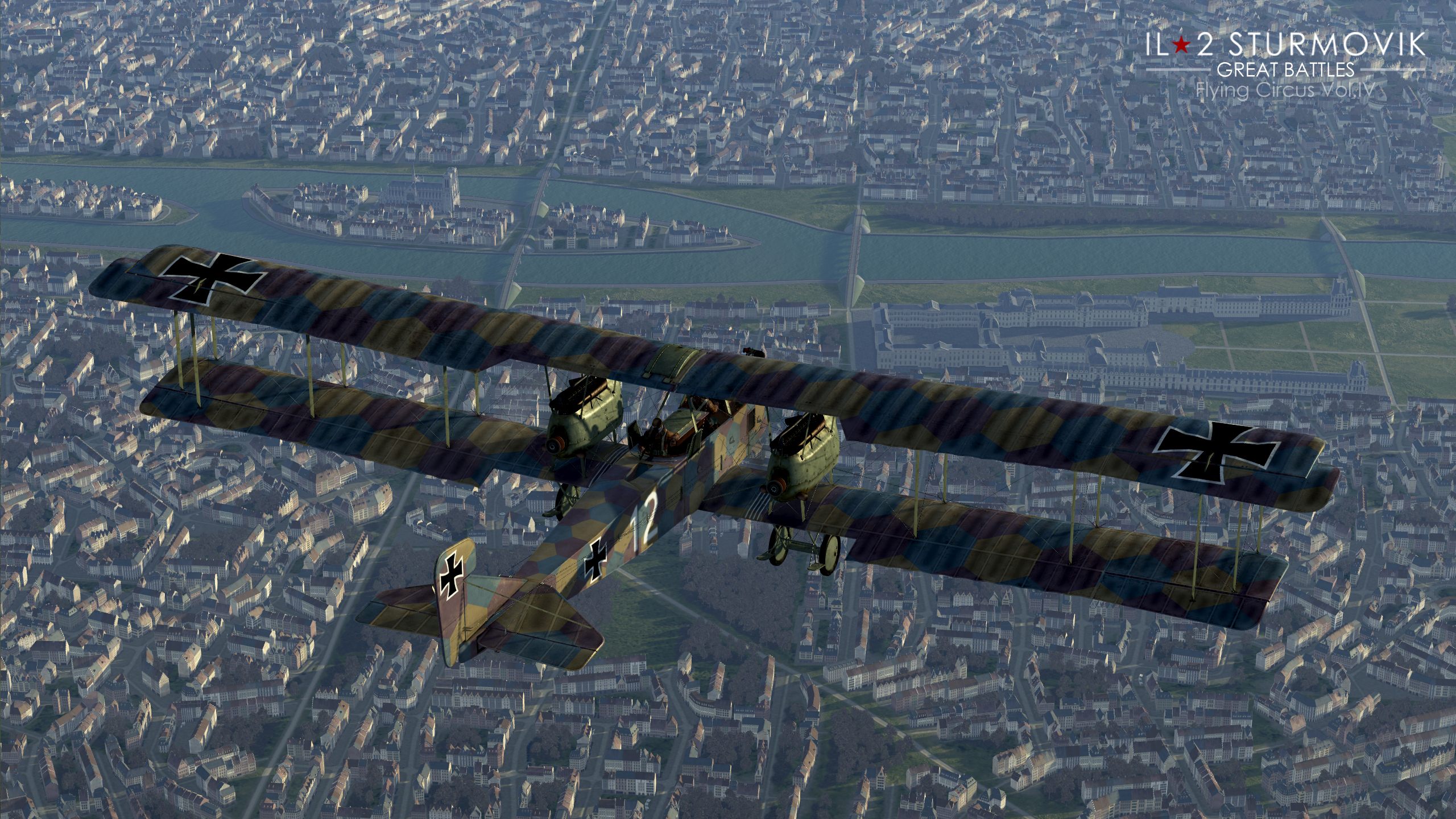 It will bring seven new planes: Airco D.H.2, Albatros D.III, Fokker E.III Eindecker, Roland C.IIa and Sopwith ones - Pup, 1½ Strutter and single-seat Scout 1½ Strutter (Strutter B). In addition to these new aircraft, there are extensive changes to the Western Front WWI map - unlike the new aircraft, these changes will be available to owners of any Flying Circus module. Dozens of new settlements, factories, and airfields are being added, including Paris.