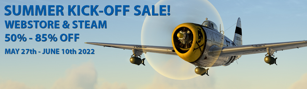 Hurricane Mk.II - 75% Off Yak-9 – 66% Off Yak-9T – 66% Off Fw-190 D-9 – 75% Off P-38 J-15 – 75% Off U-2VS -75% Off Ju-52/3M – 75% Off Bf-109 G-6 – 75% Off Yak-1B – 75% Off Spitfire Mk. VB – 75 % Off LA-5FN – 75% Off HS-129 B-2 – 85% Off P-40E-1 – 85% Off Macchi MC.202 – 85% Off Fw-190 A-3 – 85% Off LA-5 Series 8 – 85% Off