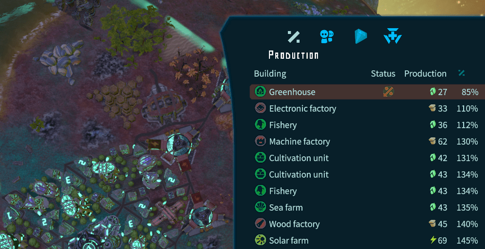 The new building list represents an almost too modest revolution for total control over your global colonies. Here you get an overview of all buildings in your colony. You can sort them by productivity and condition and have them equipped with upgrades, repaired or cleaned. There is also a list of all resources that are located in your area and can be mined directly. In the city list all districts are listed and can be checked for their quality of life.