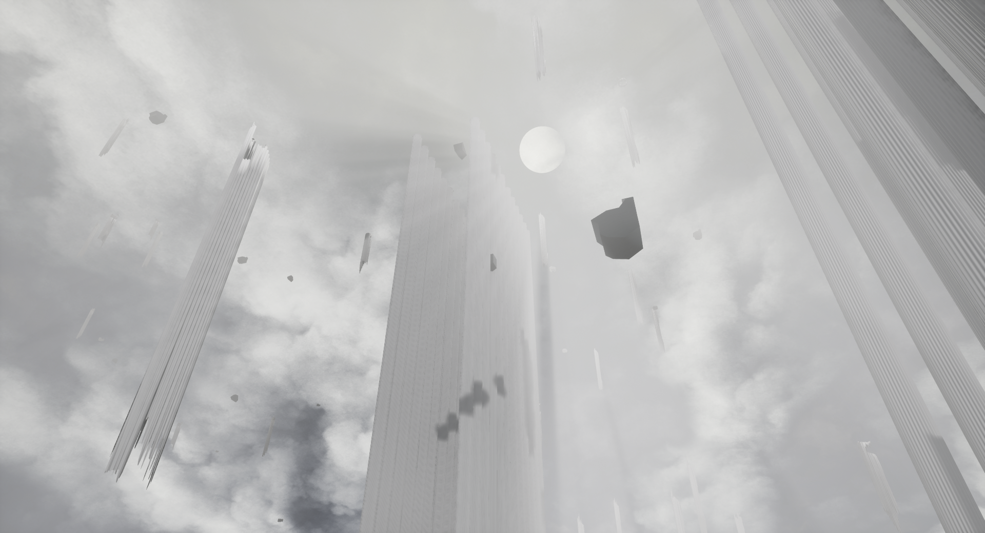 This is a screenshot of the sky area from the new level ( I want the rest to be a surprise, so I can't show too much, of course!). It's been a labor of love from the beginning. The models took me around 3 weeks to make and materialize correctly (I've been working on them since March). I use the 3D modeling software Blender for all of my 3D art. The level design, which I admit isn't my specialty, took an additional 3 weeks while working on the localization update. I usually start by roughly sketching the level and then laying out block pieces to try and visualize what I want to do while keeping my scope small enough to prevent becoming overwhelmed. This level includes 2 poems, but you may or may not see all of the stanzas since there are several ways to finish it. I have an internal system for handling the poems, which allows me to place them down fairly quickly. It's a universal system. The music is from multiple sources ( I do not write my own music. Again, it's not something I specialize in), but I do tend to mix and match several pieces of music and sound together to create a unique experience. This one has some sounds that are only heard in headphones.