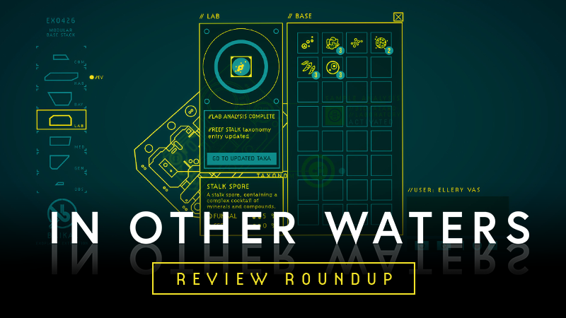 "In Other Waters pulled me through fields of alien fauna, caverns filled with glowing acid pools, through powerful currents that could sweep me away, and to the dark depths of the ocean's lower floors. In moments, it captures both the beauty and terror of the ocean. That coupled with the detailed ecosystem and the mystery of Minae's secret work had me spellbound until the end."-PC Gamer, 80/100