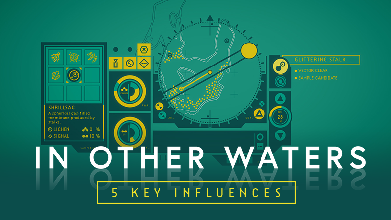 The Cougar No7 is a thing of beauty. This 1973 portable radio looks like something straight out of a Star Wars or Alien sequel, all radial dials and plastic plating. When I sat down to design In Other Waters I wanted to get away from the now tired aesthetic of pale blue holographic interfaces layered with thin lines and too-much-data. So I turned to the industrial design of iconic objects like the Cougar No7 as well as the bold interfaces of 1990’s animes like Neon Genesis Evangelion and Mobile Suit Gundam Wing. The result is a UI that is bold and colourful, while still being tactile and chunky, with an asymmetry that is more industrial dashboard than Apple design award. I still have a little model of a Cougar No7 on my desk, to remind me of the humble origins of the game’s visual design.