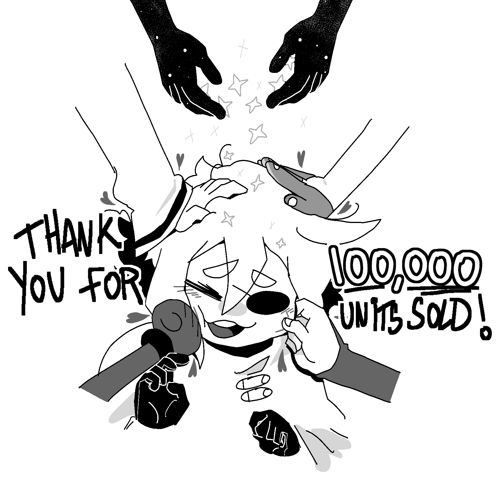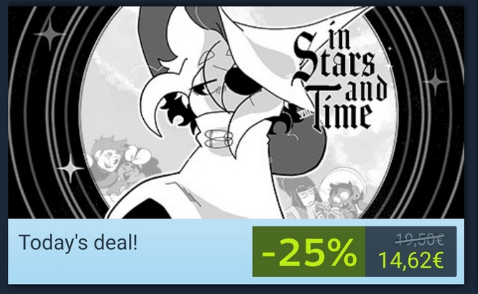 (puts finger on my earpiece) i am being told the funny timeloop rpg In Stars and Time has sold ✨ 100,000 units worldwide ✨ accross all platforms. what the crab