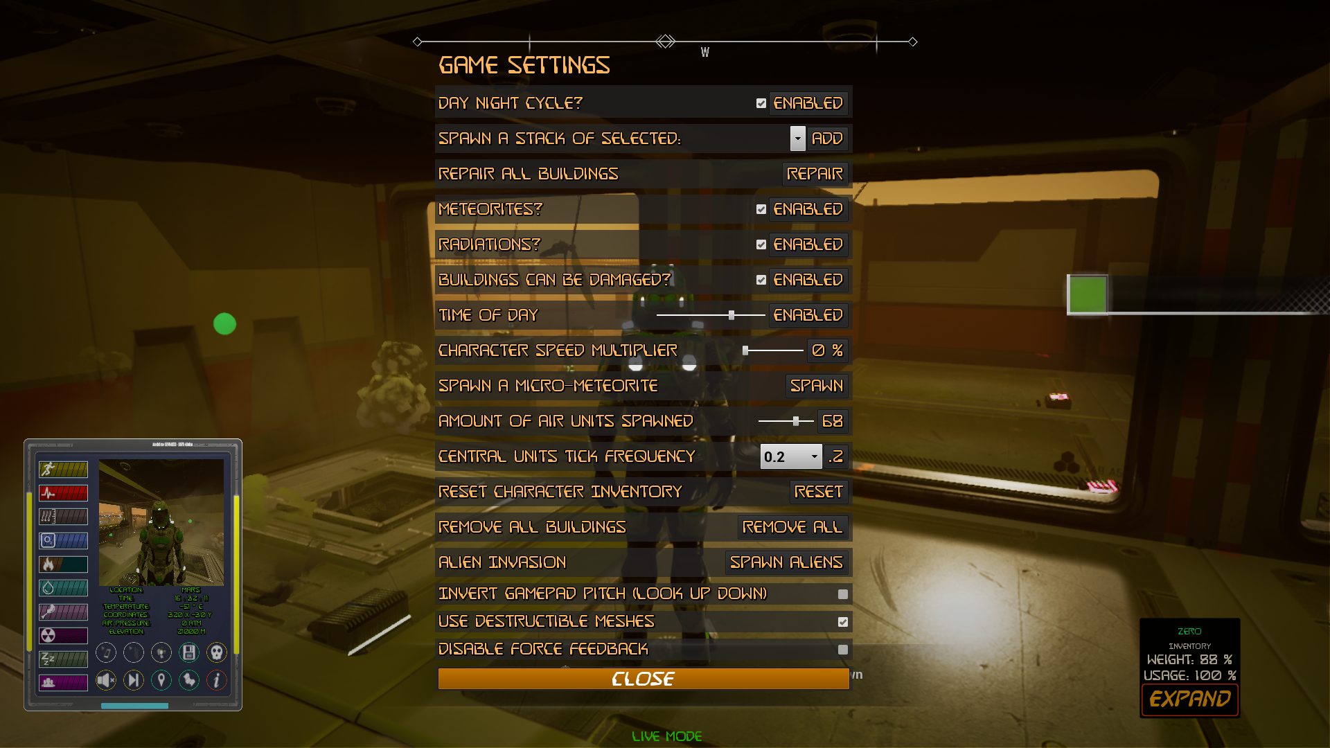1) We have added a new sandbox mode to build or inspect your bases without using the character or the jetpack to fly. It's also very useful to quickly explore the area.