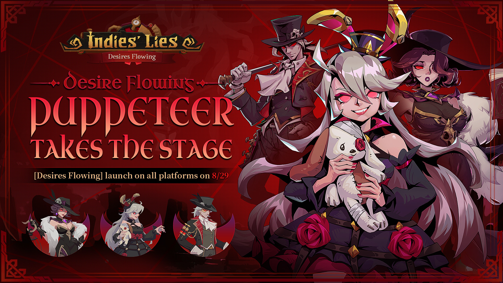 Testing of the new DLC is officially LIVE! We would love to give the Indies' Lies community a taste of the new [Puppeteer] class where you recruit [Followers] to fight for you. We are eager for your feedback and we hope you enjoy the new mechanics! This test will last 72 hours and will conclude at 7PM Pacific time August 18.