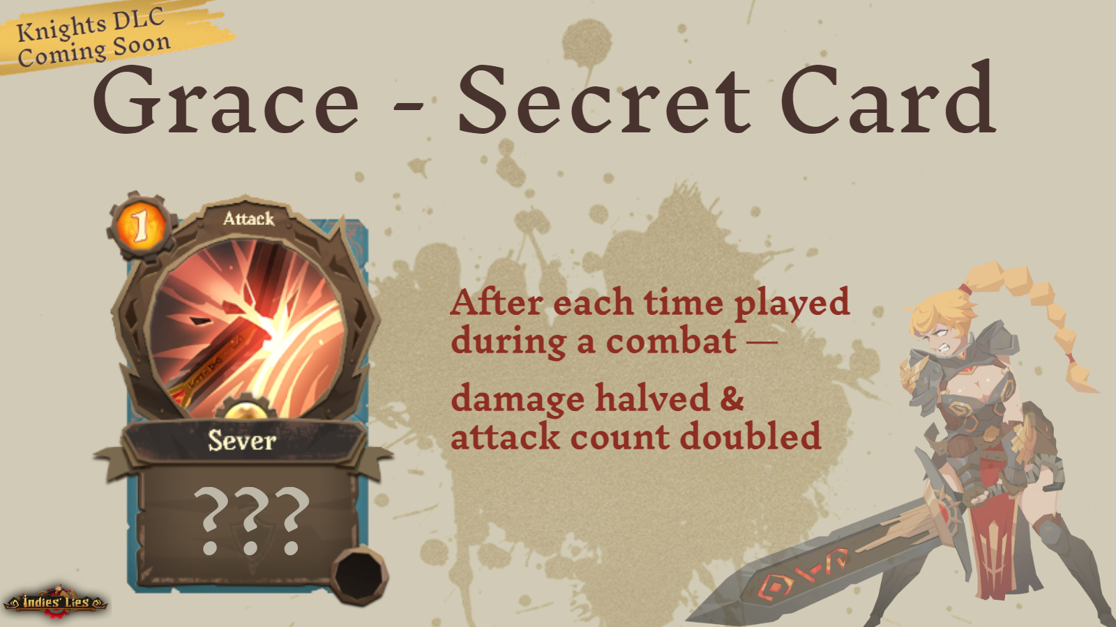 Last week we held a poll - Looks like the community is most excited about Grace in the upcoming Knights DLC! You might be familiar with "Sever" as a Partner card for Grace. As a hero card in the upcoming Knights DLC, it has new mechanics - What do you think?