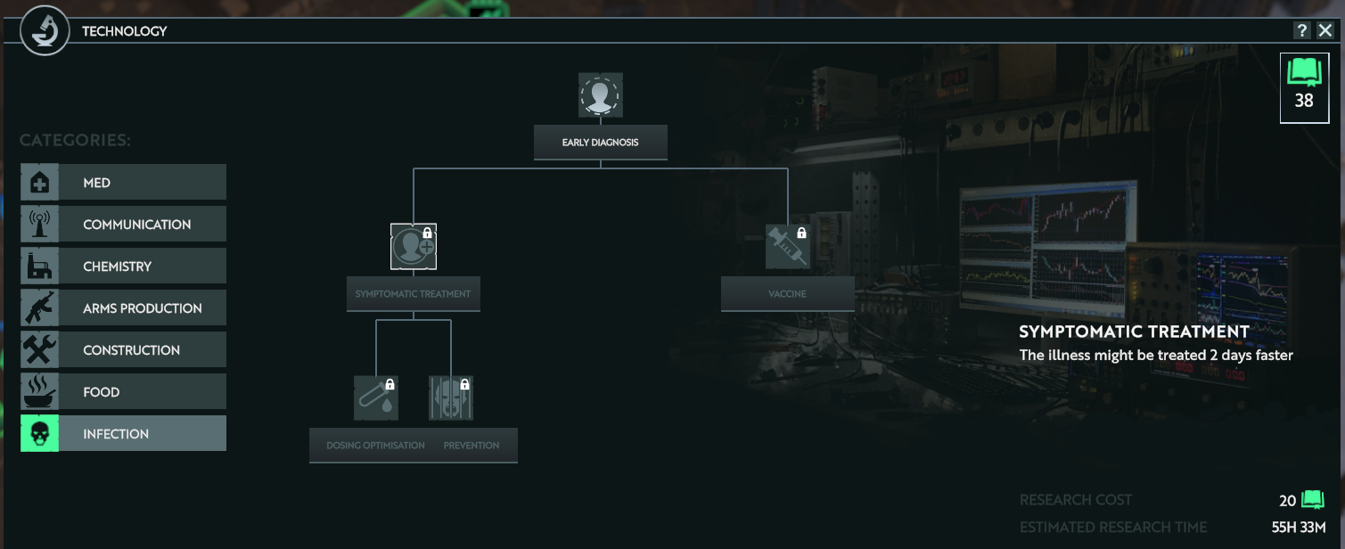 The Story goes on! With the introduction of the Scientist Storyline, we are also adding the Illness system to the game. While most of the citizens, who have survived, seemed immune to the Mad Virus for a long time, the Virus started to mutate. Now it's your job to cooperate with the new Scientist faction, research vaccines, and produce them for your citizens. Worst case scenario? Infection outbreak inside the Zone.