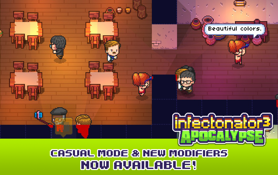 Casual Mode - A new game modifier for fans of the classic Infectonator. No cure and less panic. Enjoy this relaxing and therapeutic mode where you can destroy the world casually on your spare time. No modifier token is required to activate this mode.