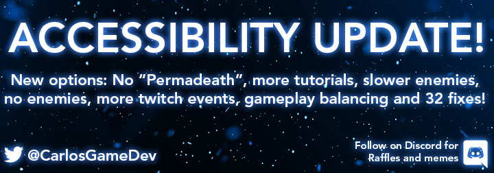 My name is Carlos Coronado, gamedev of INFERNIUM. After the release I've been listening to your feedback and I've done something about it! The most important features this update brings are four accessibility options, thought for people who want to enjoy Infernium in a different way than I had in mind: