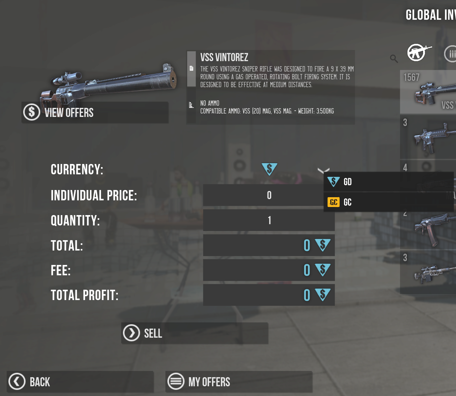The first major change is going to be on the flea market. Normally you could sell and buy items for GD (Game Dollars) or SD (Survival Dollars) but now we have also enabled GC (Gold Coins), our Premium Currency, as an option.