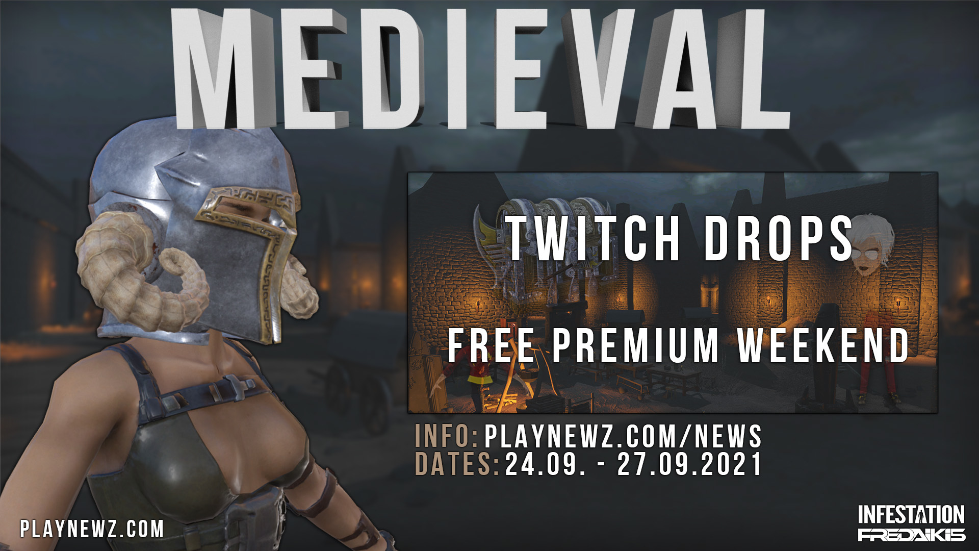 The last weekend of the Medieval 2021 event is about to start. This time we will enable Twitch drops again where you can get skinboxes and cosmetics by just watching a stream on Twitch. We also bring FREE PREMIUM WEEKEND and 50% of any cosmetics in the store that has something to do with the Medieval 2021 event!