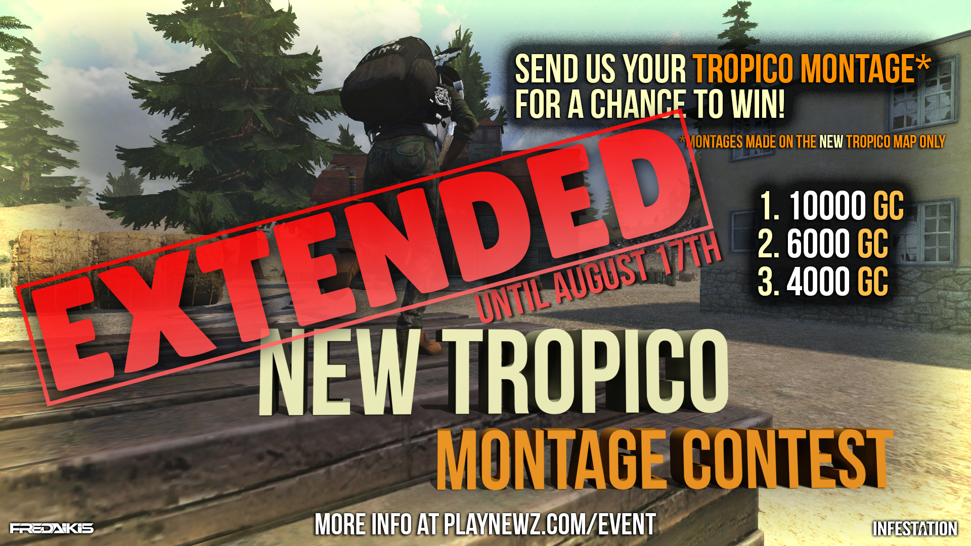 After some feedback from players, we have decided to extend the New Tropico Montage Event till August 17th! It will give players more time to record and edit, which is not an easy task! Start shooting your enemies and shooting your footage and get ready to post it in our Official Discord Server!