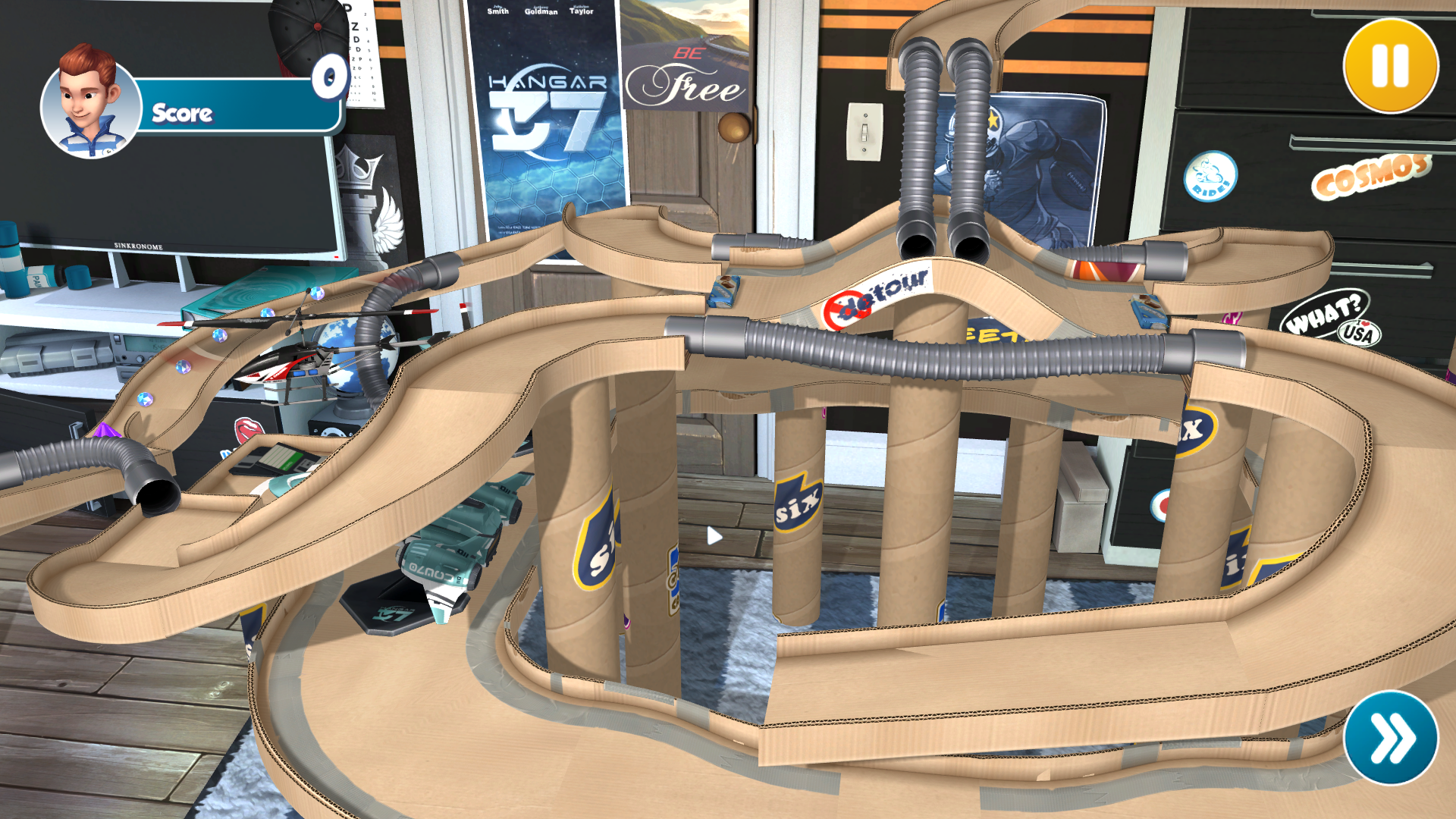 Getting a good boost is just the first step - now you have to be precise with it! Bounce off the conveyor belt, survive the loops and watch out for the hidden obstacle - don’t worry, you’ll know which one when you get to it! The main trick is to shoot the boost so there’s room to zoom even if you goof!