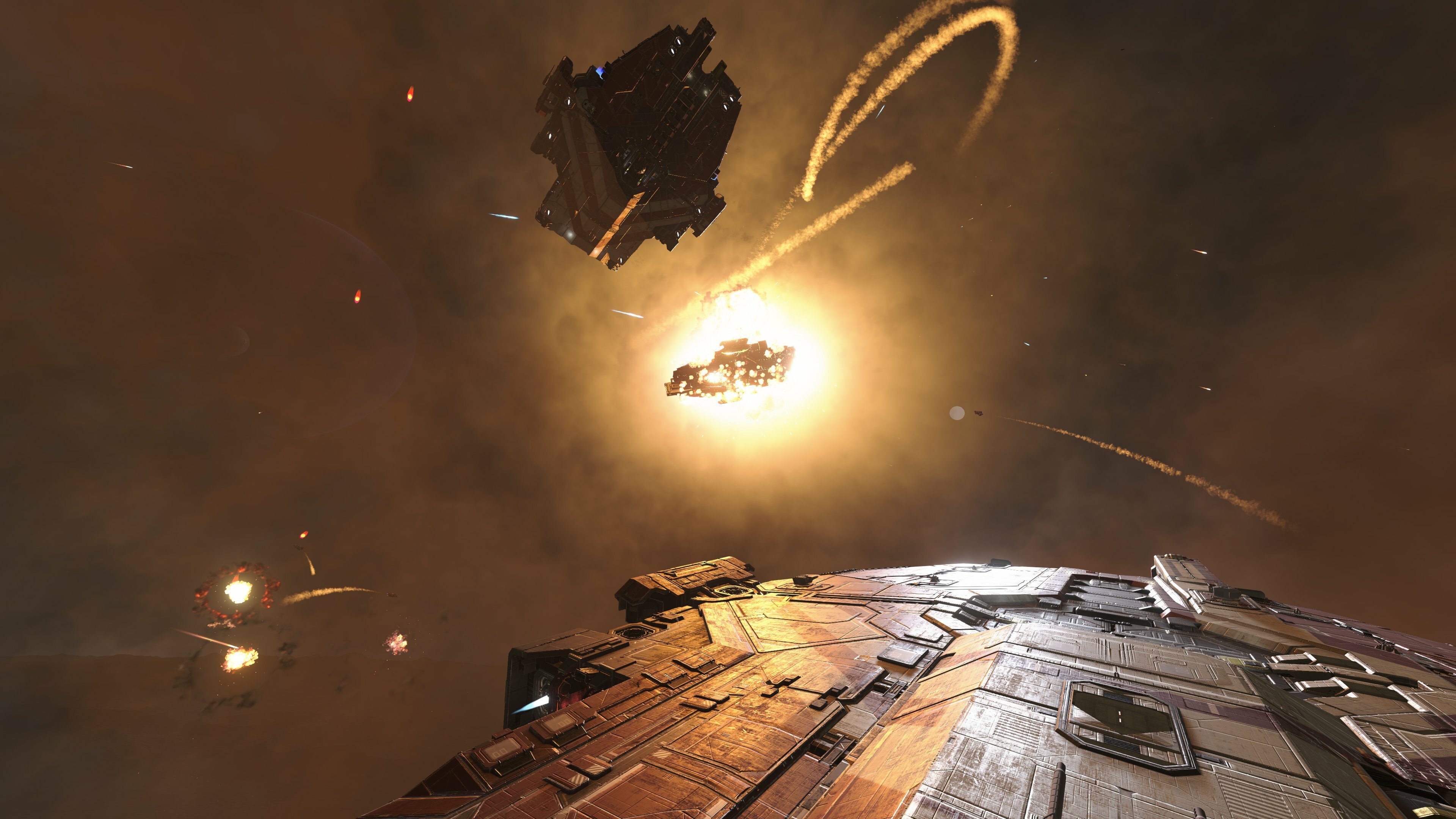 I'd like to start by saying that we're pretty happy with the core loop gameplay, our "30 seconds of fun". The feedback we've received from players is pretty unanimous: the huge chaotic battles involving hundreds of ships, exciting dogfights, and visual effects of explosions lighting up the battle smog have made some fairly unique experiences in gaming. This is clearly the strongest part of our game, so we don’t intend on changing the core experience much beyond balance tweaks.