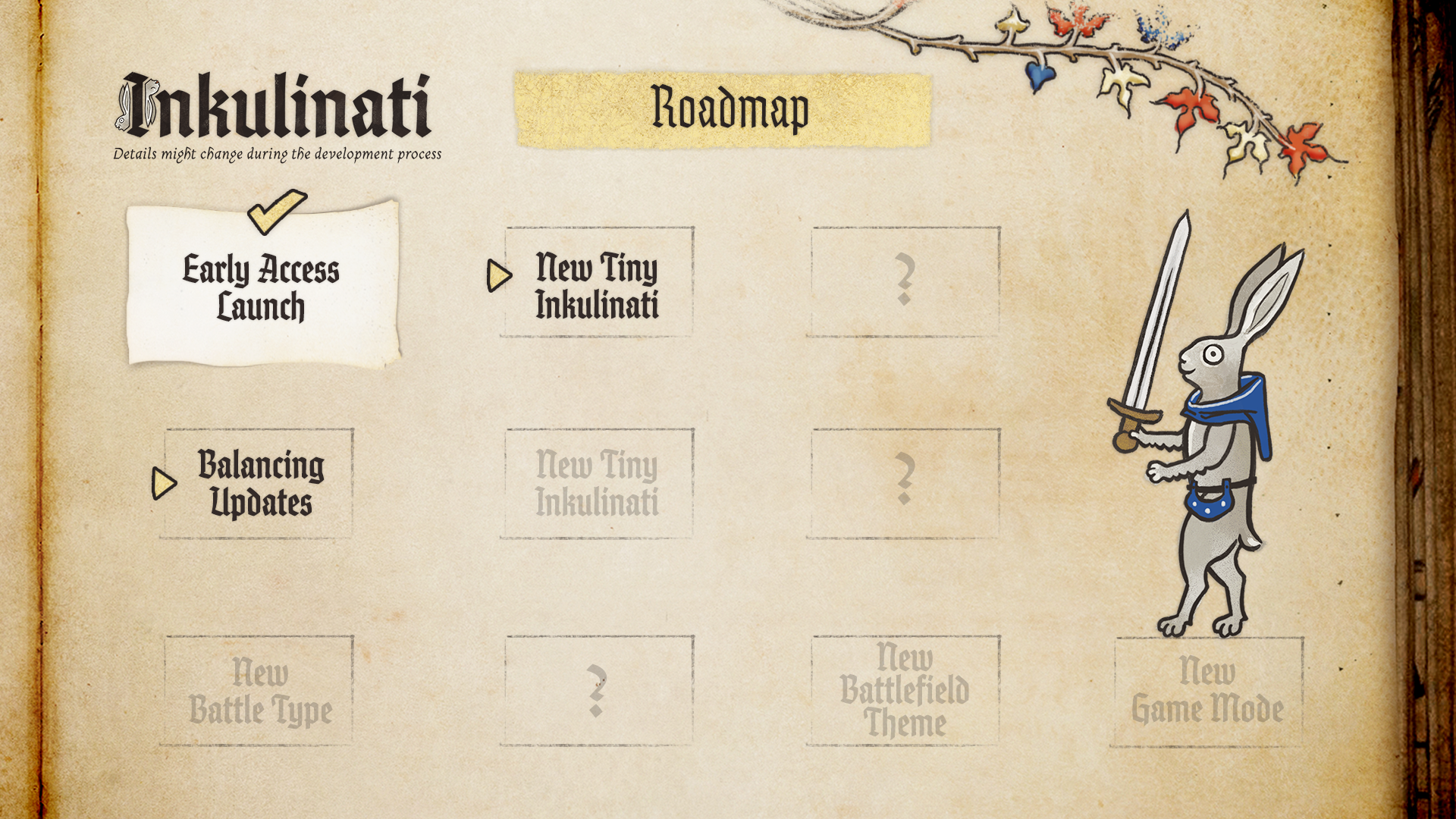 It’s us, Yaza Games here. As you may have already noticed, we are really, really close to Inkulinati’s Early Access launch. It’s hard to believe that there are only a few days left! But before you begin your adventure to be the most celebrated Inkulinati Master across the lands, we want to show you Inkulinati’s Early Access Roadmap so that you are aware of what else is coming to the game in the future.